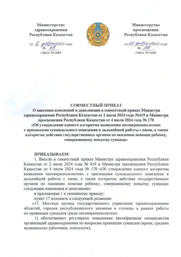 Согласно приказа Министерства просвещения Республики Казахстан №170 от 4 июля 2024 года "Об утверждении единого алгоритма выявления несовершеннолетних с признаками суицидального поведения и дальнейшей работы с ними, а также алгоритма действий государственных органов по оказанию помощи ребенку, совершившему попытку суицида", в КГУ "Средняя школа №24" отдела образования по г.Усть-Каменогорску управления образования ВКО было проведено совещание с участием классных руководителей всех звеньев, где был рассмотрен единый алгоритм выявления несовершеннолетних с признаками суицидального поведения и вопросы буллинга в школе.