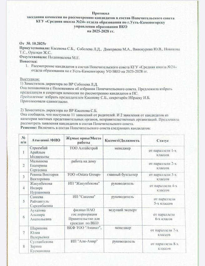 Протокол » Коммунальное государственное учреждение "Средняя школа № 24" акимата города Усть-Каменогорска
